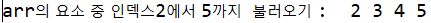 System.out.print("arr의 요소 중 인덱스2에서 5까지 불러오기 : ");