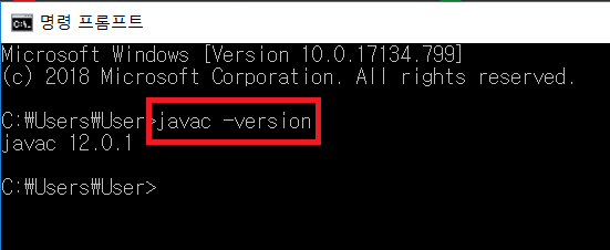 환경 변수 설정이 올바르게 되었다면 "javac 버전"이 출력되지만, "javac은(는) 내부 또는 외부 명령, 실행할 수 있는 프로그램, 또는 배치 파일이 아닙니다."라고 출력된다면 환경 변수에 추가한 경로가 잘못된 것입니다. 이때에는 JAVA_HOME, Path 환경 변수를 수정한 후에 명령 프롬프트를 다시 실행하셔보세요.