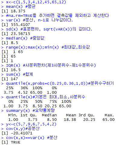 cov(x,y) # x와 y의 공분산입니다.