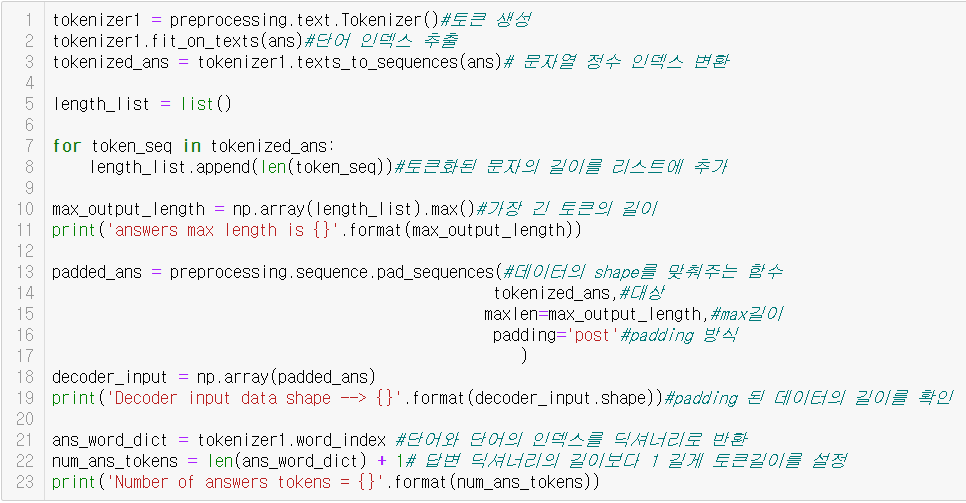답변 또한 토큰화를 시킵니다.