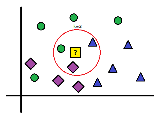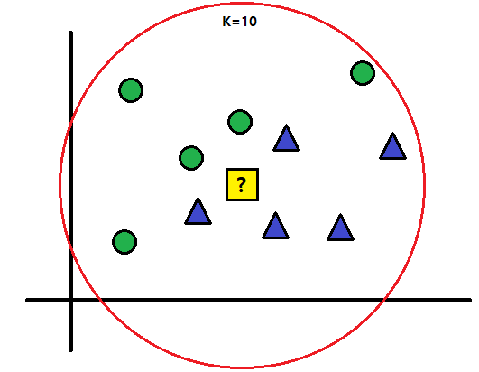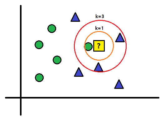 K가 1일 때는 동그라미라고 판단하겠지만, K를 3으로 변경한다면 세모라고 판단할 것입니다.