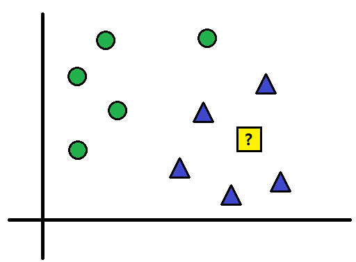 최근접 이웃 알고리즘은 그림 속의 물음표의 주변에 세모가 있기 때문에 세모라고 판단하는 알고리즘입니다.