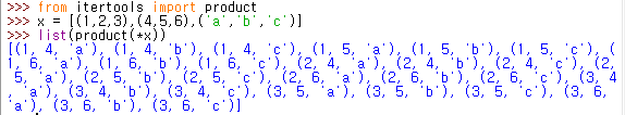 from itertools import product // itertools 라이브러리에 있는 combinations 불러오기