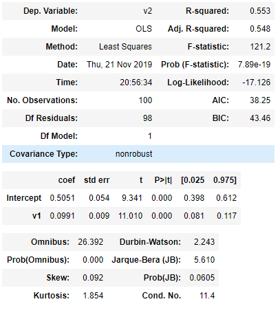 예시 데이터로 v1에 1을 넣었을 때, v2는 0.7041902616620064가 나왔습니다.