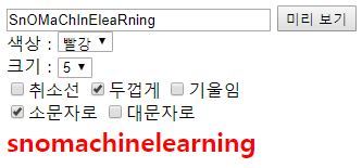 <input type="checkbox" name="option" value="s_letter">소문자로